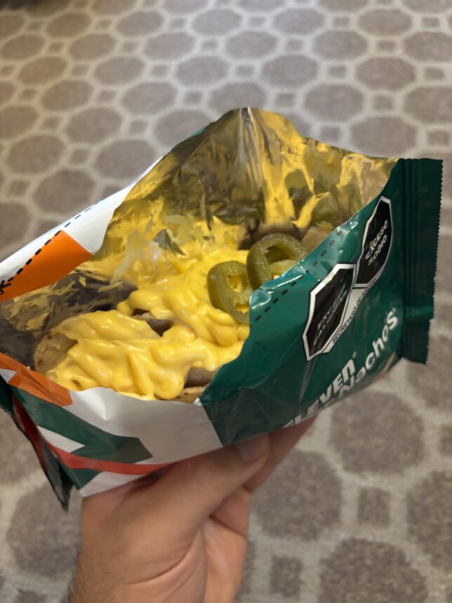 LAX名物のオブジェを見ながらお腹が空いたのでレストランを探すも見当たらずセブンイレブンでロサンゼルスでもコレ
